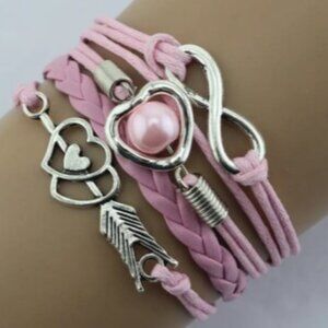 Cupid's Arrow Pearl Rope Multi-Layer Heart Bracelet Pink and Silver Retro Style