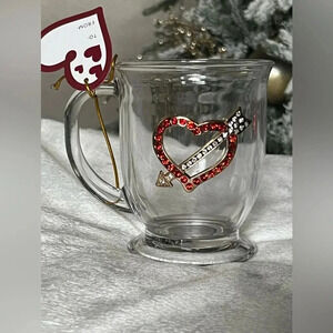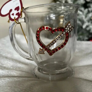 Cupid's Arrow Rhinestone Heart Glass Mug – 15 oz
