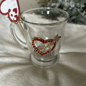 This stunning glass mug features a unique heart design accented with radiant red and clear rhinestones, complemented by an elegant cupid’s arrow detail. Perfect for romantic occasions or as a thoughtful gift, this mug brings sparkle and charm to every sip.
