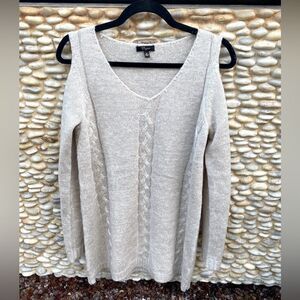 Cupio Beige Cold Shoulder Long Sleeve Sweater. Size Medium. Excellent Condition.