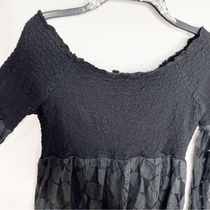 Cupio Black Lace Bell Sleeve Smocked Boho Blouse Medium