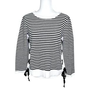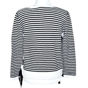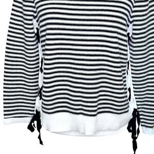 Cupio Black White Textured Stripe Long Sleeve Pullover Sweater Lace Up Sides