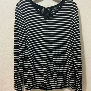 Cupio Black with White Stripes Knit Tee long sleeves size M back ties accents
