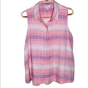 🔥🔥Cupio Blush Pink Ivory Stripe Button Front Sleeveless Lightweight Top size L