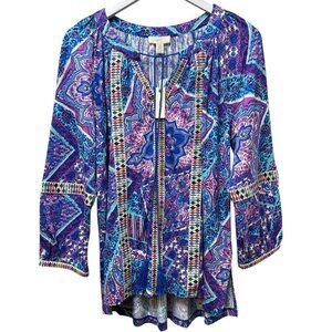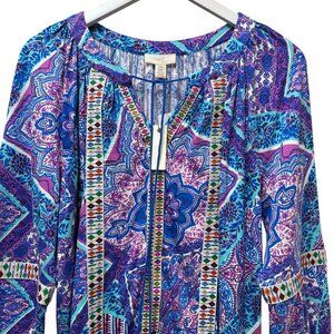 Cupio Boho Peasant Top Size Large Womens Tunic Tee Blouse Blue Paisley NWT