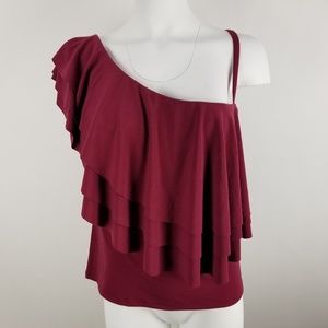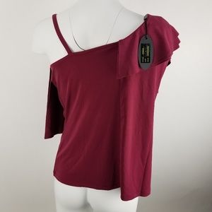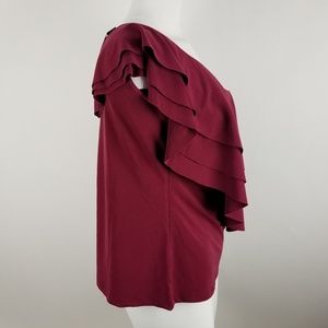 Cupio Dark‎ Redwood Ruffle Top NWT
