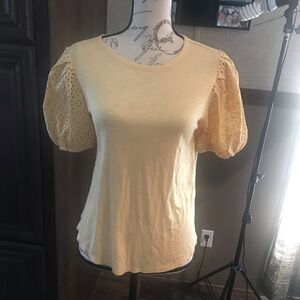 Cupio Eyelet Puff Sleeve Yellow Blouse Medium NWT