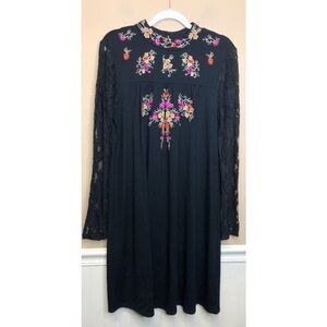 Cupio Floral Embroidered Long Lacey Sleeve Dress Size L NWT