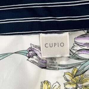 Cupio Floral Kimono Cardigan Top Open Front Boho Striped Navy Trim Size L