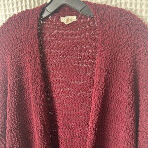 Cupio Long Cardigan Textured Popcorn Maroon Red Long Sleeve Pockets Open Medium
