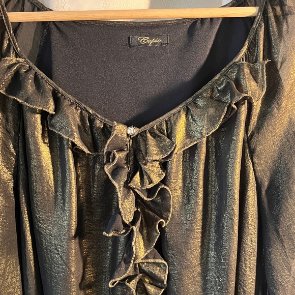 Cupio - Metallic Bronze semi sheer, lined long sleeve blouse