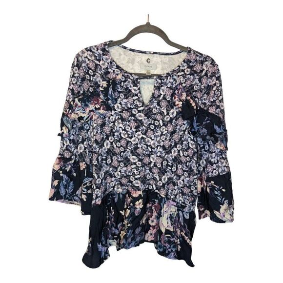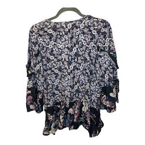 Cupio Multicolor Floral Print Long Sleeve Blouse Women's Small