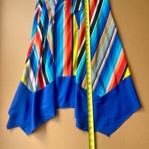Bright stripes in red, orange, yellow, and black. Eye-catching and stylish.