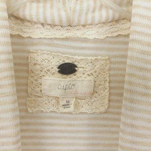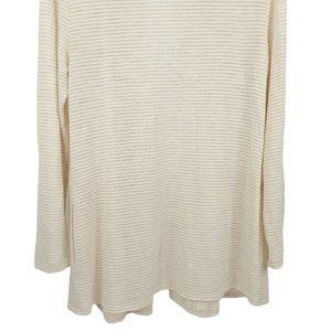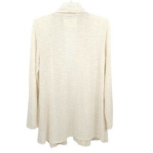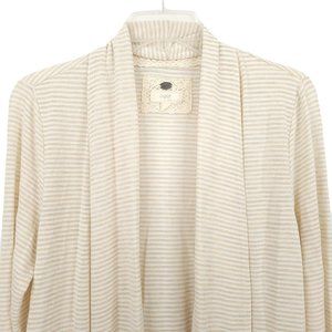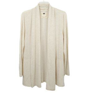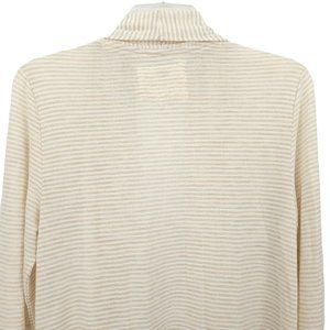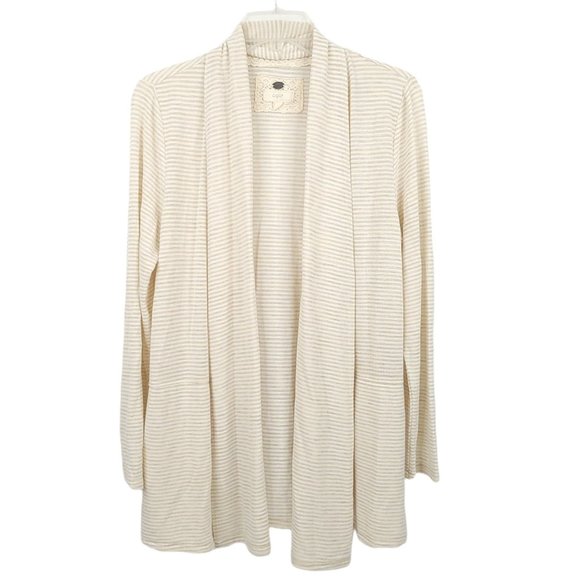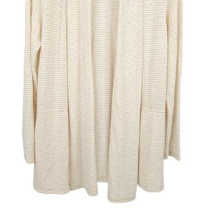 Cupio Open Front Cardigan Sweater Size M Slash Pockets Beige Brown Stripe