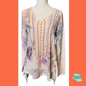 Cupio Purple and Cream Asymmetrical or Shark Bite Hem Long Sleeve Tunic Large