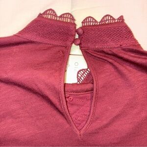 Cupio Red Relaxed Pleated Blouse with Mandarin Collar