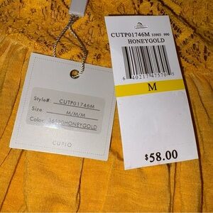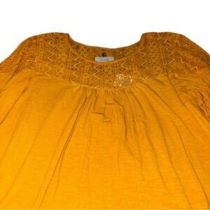 Cupio Relaxed Honey Gold Blouse with Bell Sleeves & Lace Detail NWT