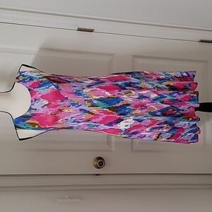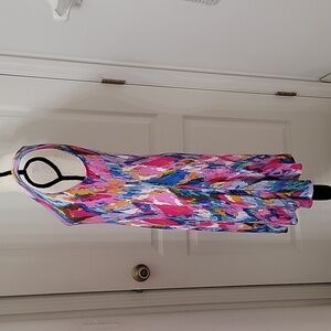 Cupio Size Unknown, Stamped Trapeze Pocket Sleeveless Swing Dress Exc. Used Condition. No Holes, Rips, Stains or Snags. Bright Summery Colors! Note: The Size Tag has been cut out. Please refer to measurements in photos to ensure proper fit. Shown on size 6 mannequin.