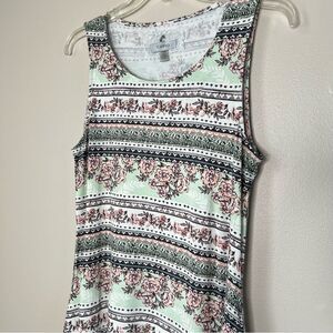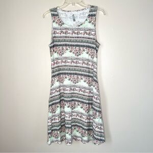 Cupio Sleeveless Round Neck Green Multi Color Floral Swing Dress