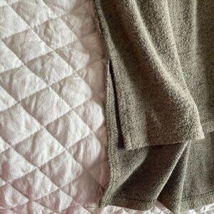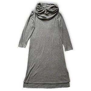 Cupio Sweater Dress Women Sz M Green Mock Neck Stretch Comfort Minimal Midi Slit