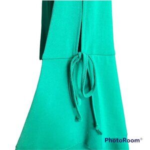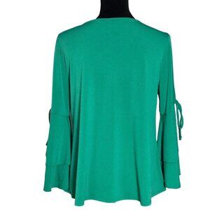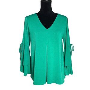 Cupio Tiered Cold Shoulder Sleeve V-Neck Blouse in Green - Size Medium