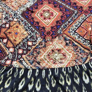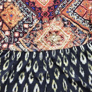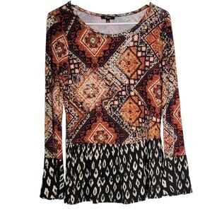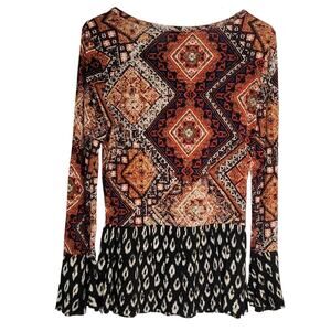 Cupio Top Women's Small Peplum Swing Batik Pattern Bohemian Artsy Eclectic Fall