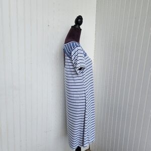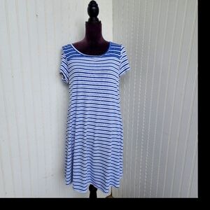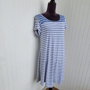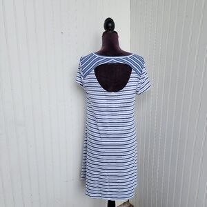 Cupio Women's Blue White Striped Short Sleeve Keyhole Back Stretch Dress Sz M D13