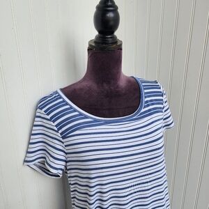 Cupio Women's Blue White Striped Short Sleeve Keyhole Back Stretch Dress Sz M