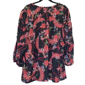 Cupio Womens Floral Peasant Top 3X 4X Plus 3/4 Boho Ruffle Puff Balloon Hippie