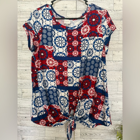 Cupio Womens Medium Red White Blue Short Sleeve Patriotic Shirt SUPER SOFT