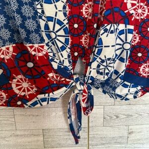 This adorable patriot shirt is super soft with a cute tie on the front bottom. Comes from smoke free home.