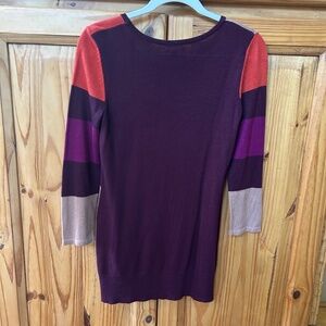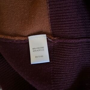 Women's Cupio sweater, lightweight, long, 3/4 sleeve, multicolor block design, maroon back, scoop neck, size small
