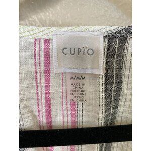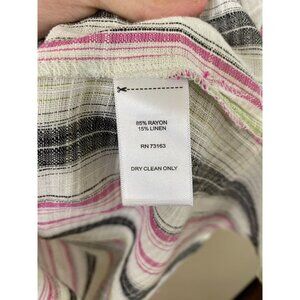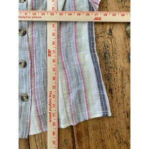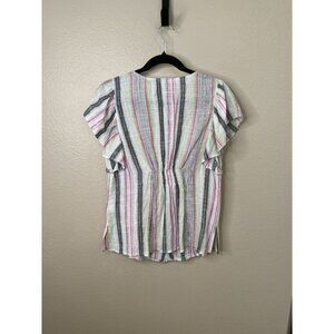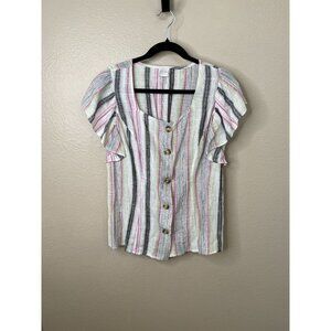 Cupio Womens Striped Button-Front Top Ruffle Sleeves M Multicolor Rayon Linen