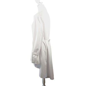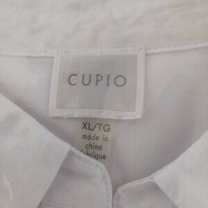 Cupio, XL White Hi Low Shirt Hidden Button Top, Full Bottom with Cinch Tie Waist. This top is in very good pre-owned condition and features: