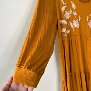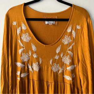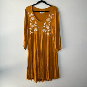 Cupio Yellow Embroidered Midi Dress Boho Hippie Floral Relaxed Fit Sz L
