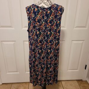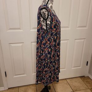 Really nice dress for any occasion. Made with viscose and spandex materials. Lightweight and flowy. Has pockets. Feels very soft. Tag says size 1X. Excellent condition.