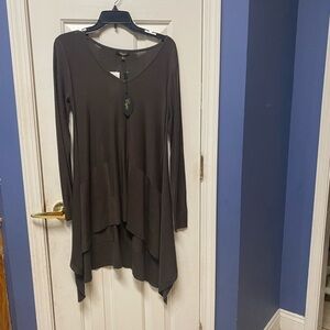 Long Sleeve Exaggerated High Low Sweater light weight v-neck soft tunic top dark gray size Medium