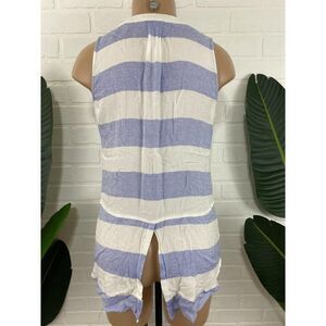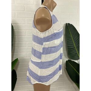 Cupio sleeveless blue and white blouse. Has a beachy vacation vibe! Button down. Collar. V neck. Slit back.