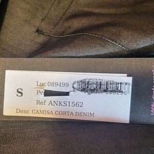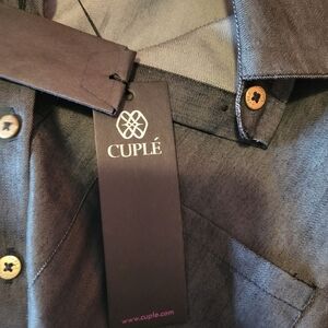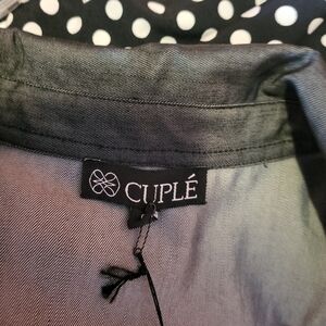 This is a great button up black denim short sleeve shirt by Cuple which is in Spain. Size Small. Chest measurement is 20". Perfect work work or pair with a cute pair or wide leg trousers to go about your day! New with tags! Smoke free dog friendly home