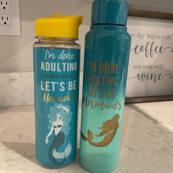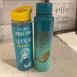 Mermaid/Adulting cups. Barely used. Like New condition. One is plastic the other is metal.