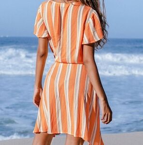 The Ariana Striped Wrap Dress is going to rock your world. Designed in a striped print, it catches the slightest breeze with ease. Th V neckline and self tie belt serve up plenty of sweetness. And did we mention this woven dress is a wrap? Oh yeah!