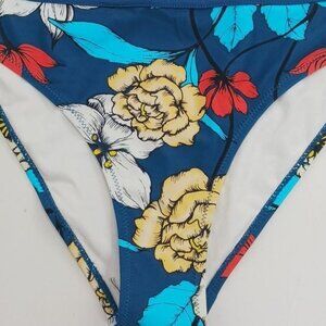 Cupshe Bikini Bottom Blue Floral Tropical Cheeky Womens Size Medium