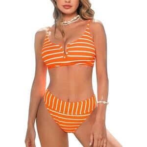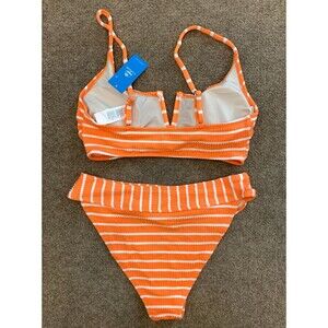 Cupshe Bikini Set Womens M Swimsuit High Rise Scoop V-Neck Striped Beach Pool