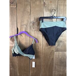 Cupshe Black & Eucalyptus Wrapped Bikini Top & High-Waisted Bottoms Set, Small