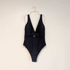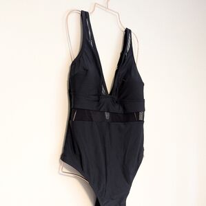 CLASSY! I love the traditional cut in all black with the mesh cutouts. Slimming color in a sexy fit. Adjustable straps and silver hardware. Great beach basic with flare.