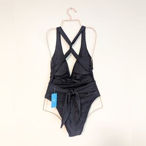 GORGEOUS one-piece. Sexy and simple. Classic, but elevated. Love the ruching on the butt and all the details on the back. New with tags, never worn, no flaws.