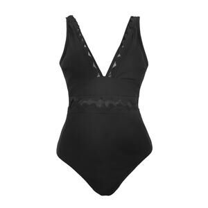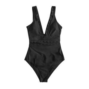 Cupshe Black Scalloped Edge V Neck One Piece Bathing Suit Swim NWT US L