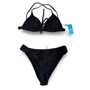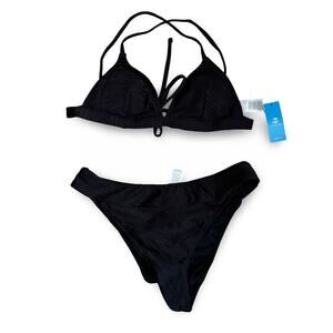 Cupshe Black Textured Triangle Bikini Set Size M NWT