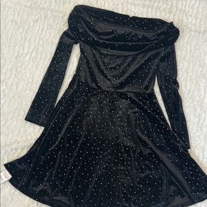 Cupshe Black Velvet Off-Shoulder Dress with twinkle stardust small women’s new