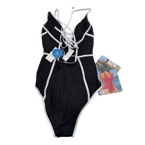 Recharge in style with the Monochrome Plunging Crossback Slim and Sculpt One-Piece. This suit transforms a simple swim into a stylish escape, ideal for those times when you need a break from the everyday hustle.